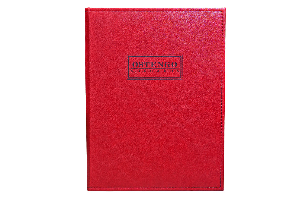This handy & chic model has been created for law firms, notary’s office, real state agencies, car dealers & any other business where signatures are required. These folders can be produced with leatherette or natural leather, in assorted colors & sizes: letter, A4 & legal. Your company’s logo is stamped and debossed: blind, silver, gold, black or copper, we can also produce engraved metal plates. In the inside, the right vertical pocket holds in place contracts & documents, while on the left side, a three centimeter strip fastens a note-pad. A luxury touch that will produce a great impact on your clients’ hands.