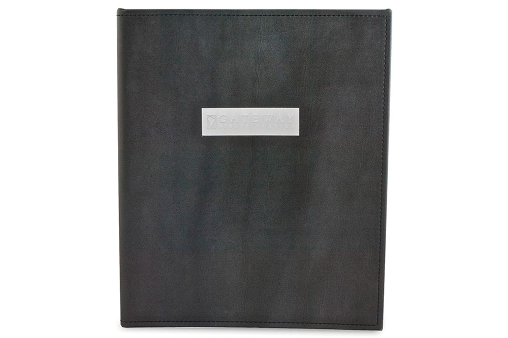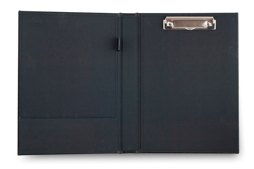These folders can be produced with leatherette, natural leather, plain or texturized vinyl fabrics, in colors and sizes to choice, and with your company’s logo stamped with a blind-debossing or an engraved metal plate. They may be used for assorted purposes such as training courses, for congress & event hosts, etc
