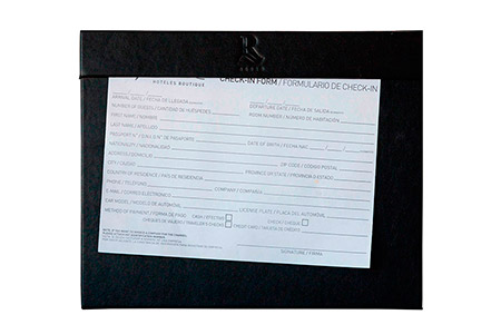 Our check-in presenters enhance your check-in area with your hotel’s logo at first sight. They have been designed to provide ease for writing & signing forms on marble, glass, wood or cement. A small detail that makes the difference. Check our assorted designs.