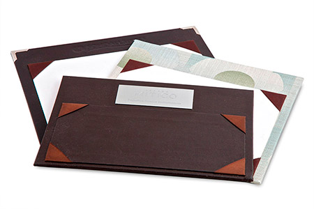 With four ribbon corners customized to fit client´s check-in form. Suggested sizes: 23.0 x 21.0 cm, 31.0 x 22.0 cm.