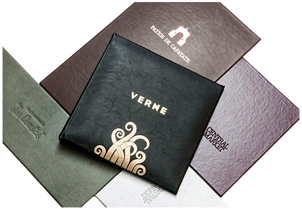 Our signature books have been conceived to capture your guests’ greetings at openings; vernissages, family, social or corporate celebrations; product start-ups; festivities. Anything goes in order to keep your memories in your hands, not in the cloud. We hand make them as real jewelry pieces in faux leather or texture vinyl cloth, manually sew the inside pages & deboss your logo or name on the cover. At The Great Menu details are very important. Padded or hardcover. Manufactured with faux leather or texture vinyl cloth. Assorted colors & textures