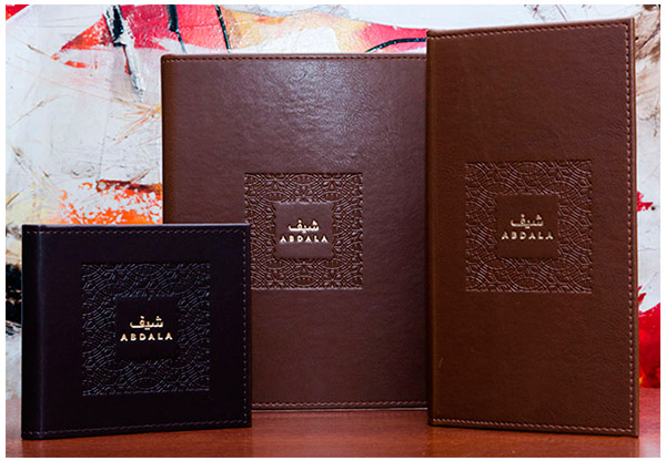 Customization: blind-debossing, debossing in gold, copper, black, white, silver. Silk-screening. Engraved metal plates. Laser.