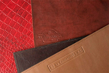 Customization: blind-debossing, debossing in gold, copper, black, red, burgundy, white, silver. Silk-screening. Engraved metal plates.