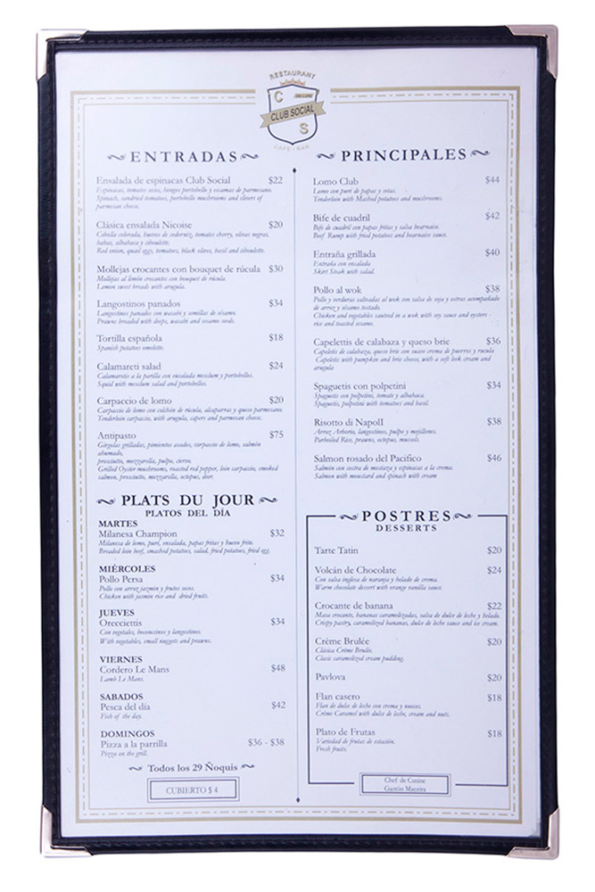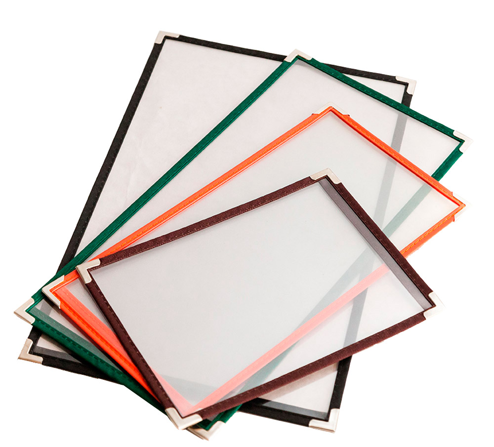 Min. Qty: 25 units. Manufacturing time: 7 days. Product in stock: single A4, LEGAL, A5. Double A4. 3-page-book A4. Products in stock are manufactured with black vinyl cloth & silver metal corners.