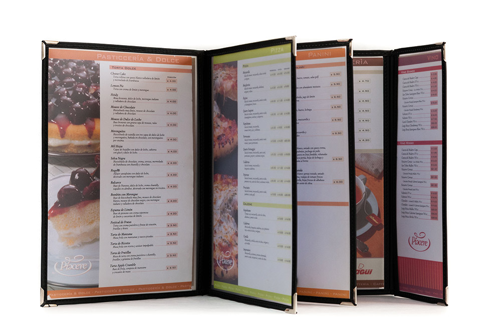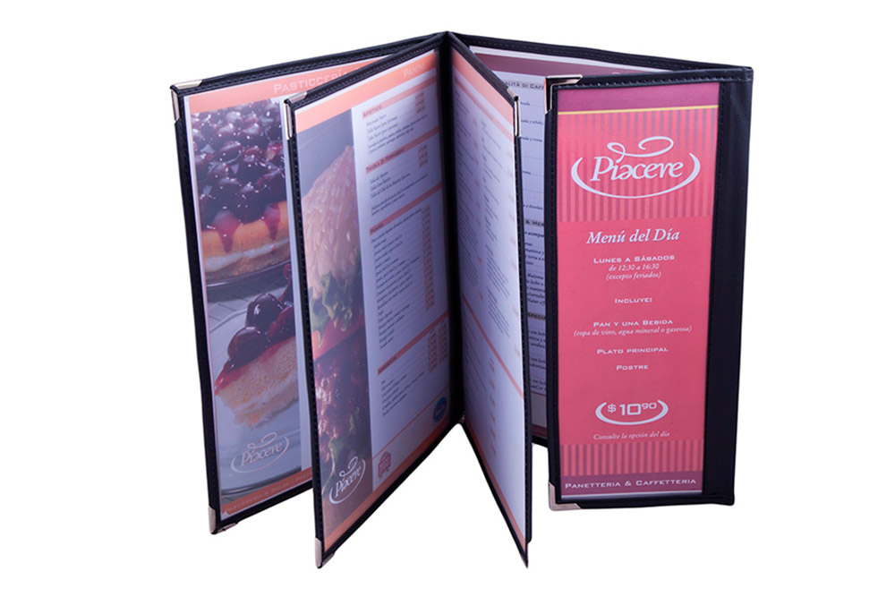 Min. Qty: 25 units. Manufacturing time: 7 days. Product in stock: single A4, LEGAL, A5. Double A4. 3-page-book A4. Products in stock are manufactured with black vinyl cloth & silver metal corners.