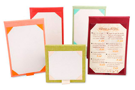 Among our exclusive range of restaurant accessories, this tent-stands offer a first-sight great visual communication with your guests. They are handy while elegant. Created for special luncheons, executive menus, buffet, cellar specials, daily specials, breakfast, etc.